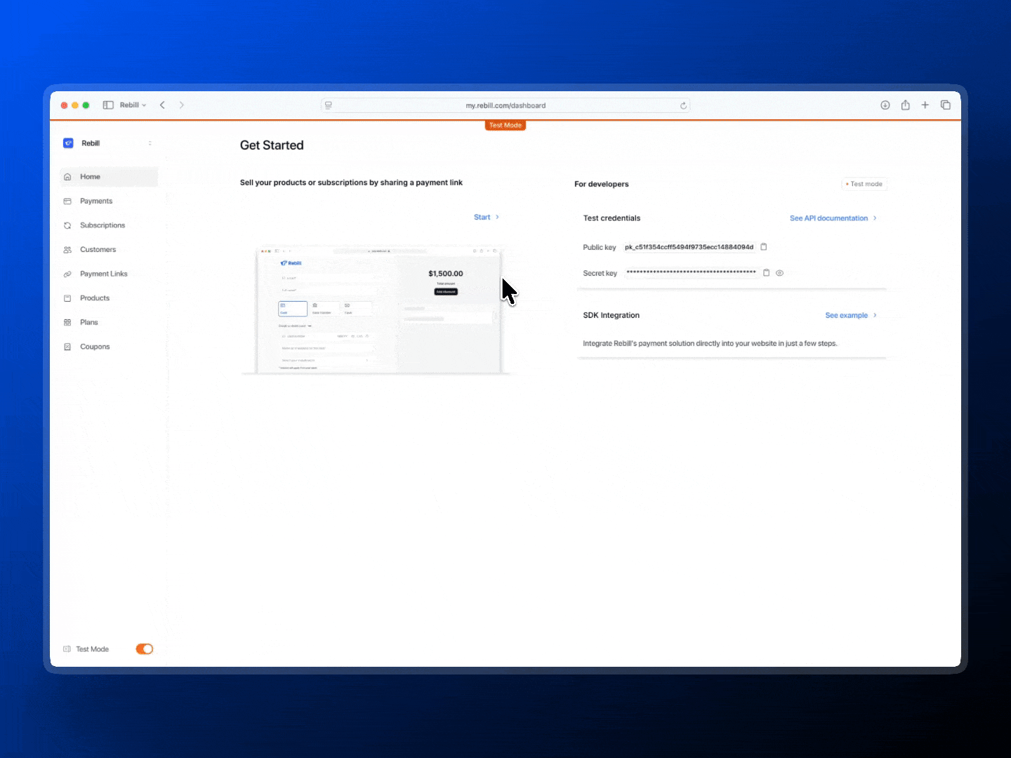From the Dashboard, merchants can define customer details in advance so the checkout opens with key fields already completed.