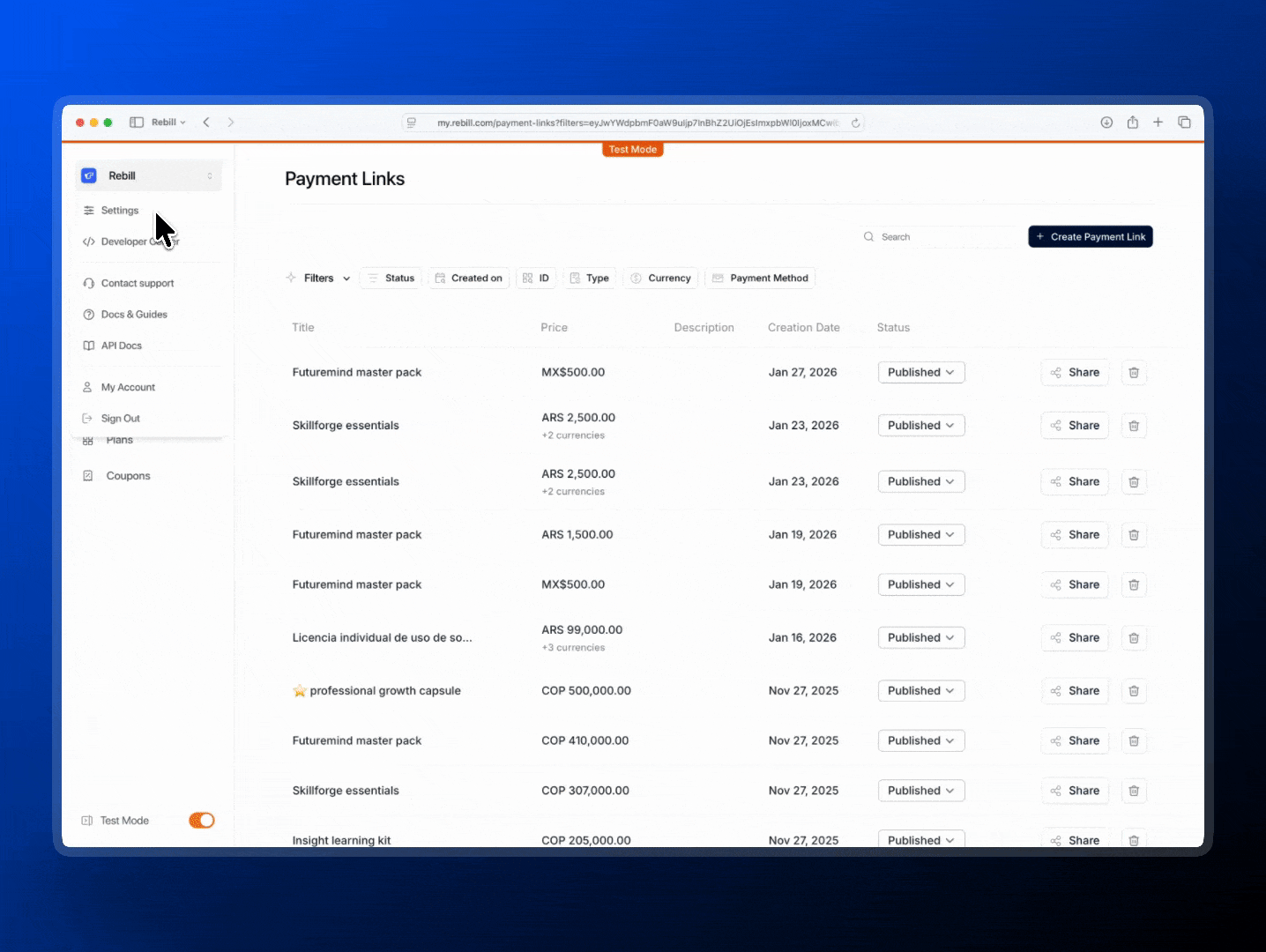 You can now define default installment rules per currency that are automatically applied when creating new payment links.