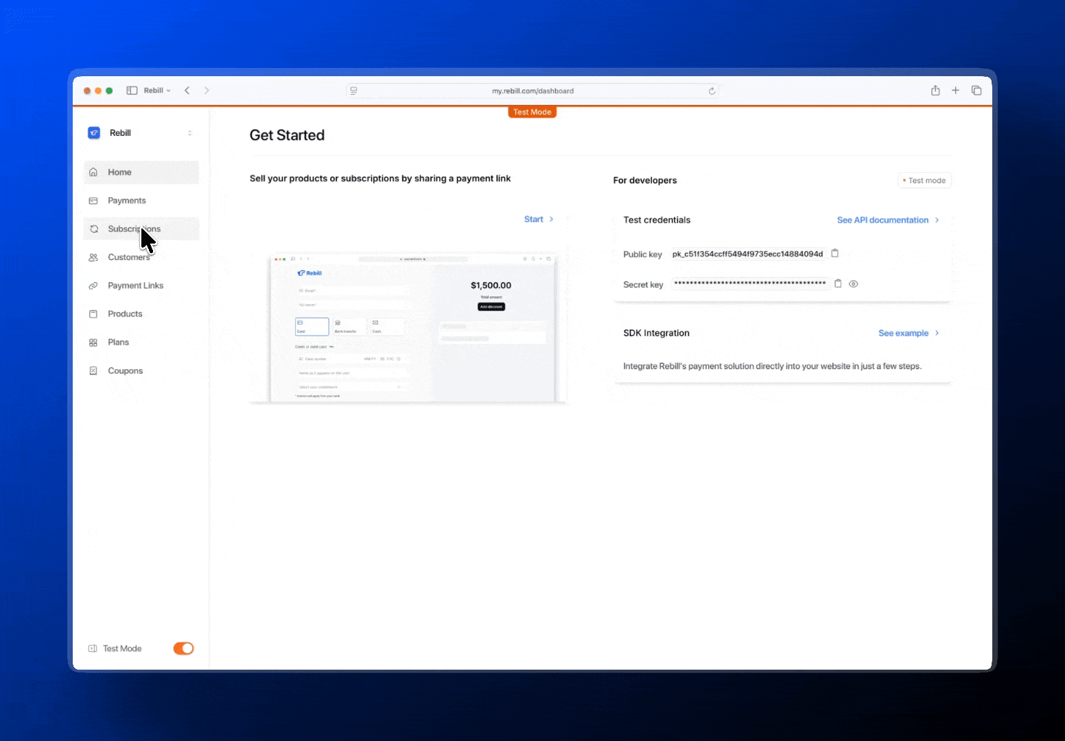 Dark mode is now available across the Rebill dashboard. Switch between light and dark themes instantly and work comfortably at any hour.